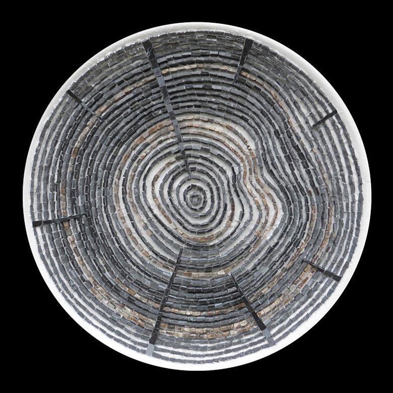 Smalti veneziani, laterizi, elementi naturali, tessere d'argento, diamentro 52cm.